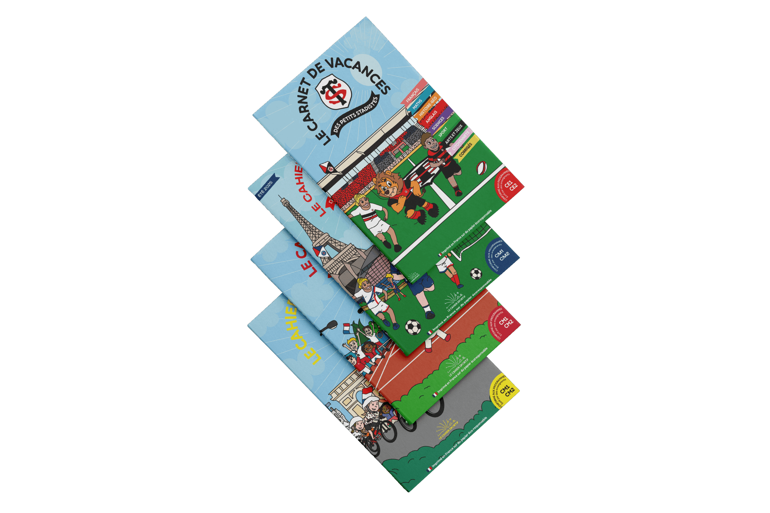 Les seuls cahiers de vacances pour enfants entièrement personnalisés aux couleurs des clubs, organisations, marques ou événements sportifs :